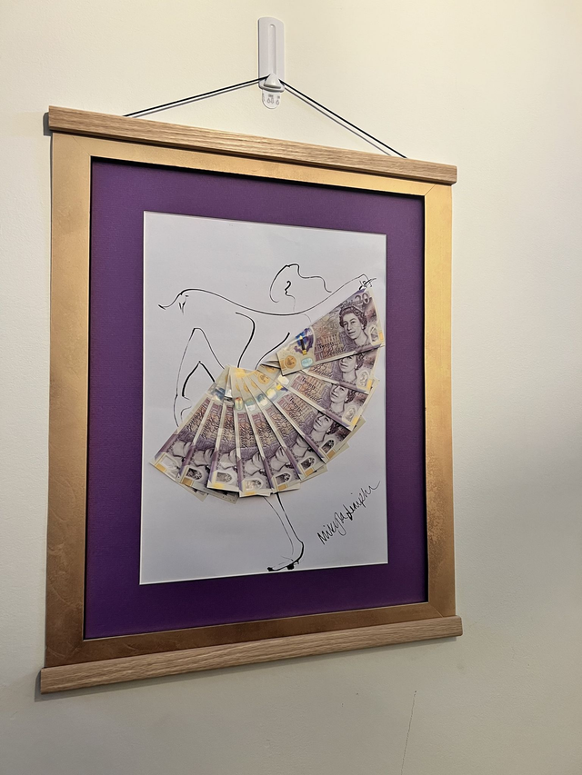 This artwork is particularly relevant to female entrepreneurs and women desiring to upgrade their life, looking for money anchors and ways to be a money-magnet. You are buying a print of the original by Mikyla Limpkin, which was drawn in ink with a collage of £20 notes.